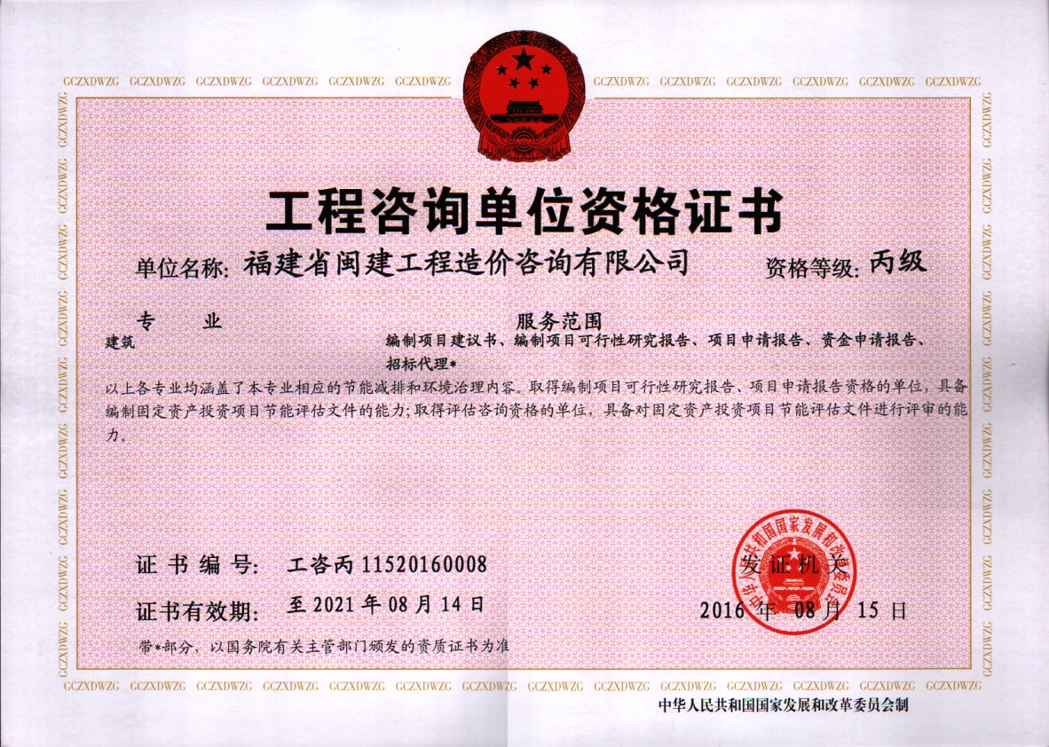福建省閩建工程造價咨詢有限公司成立于1993年,原隸屬福建省建設(shè)委員會,2001年脫鉤改制為有限責任公司,公司注冊資本1200萬元,是一家具有甲級工程招標代理資質(zhì)(證書編號:F135000429)、甲級工程造價咨詢資質(zhì)(證書編號:甲150135000084)、政府采購代理資質(zhì)、預備級中央投資項目招標代理機構(gòu)資質(zhì)(證書編號:ZYTZ-C2013239)、丙級工程資質(zhì)(證書編號:工咨丙11520160008)的綜合性工程咨詢服務(wù)單位。能承擔各類建設(shè)項目的工程招標代理、工程造價咨詢...
